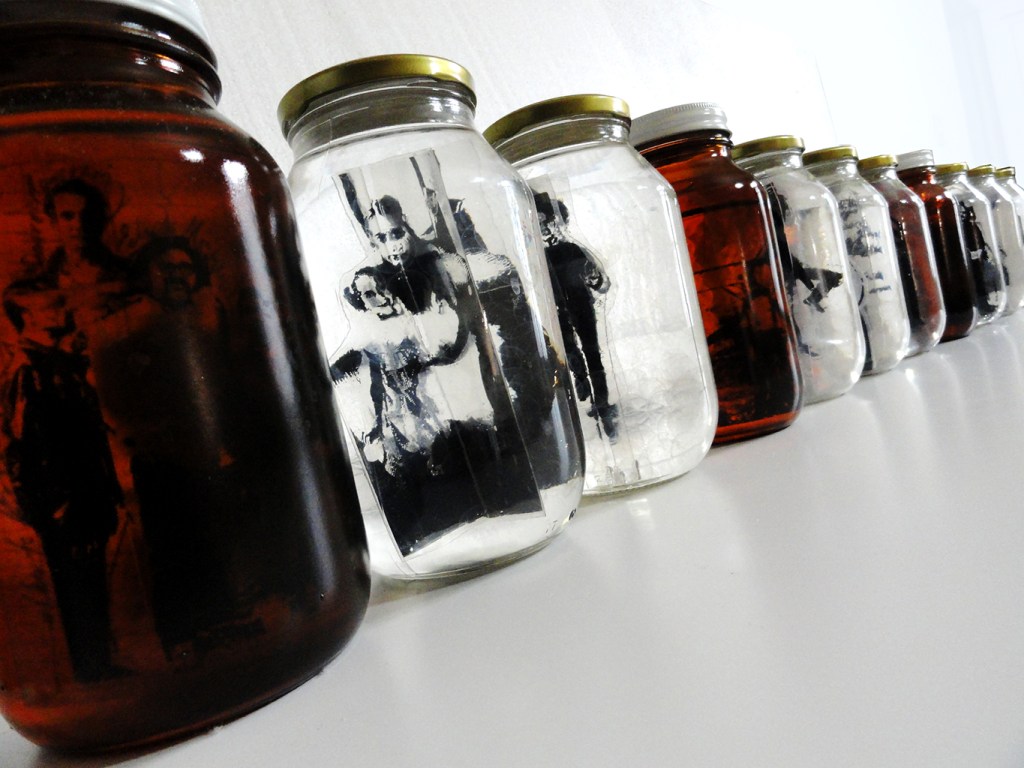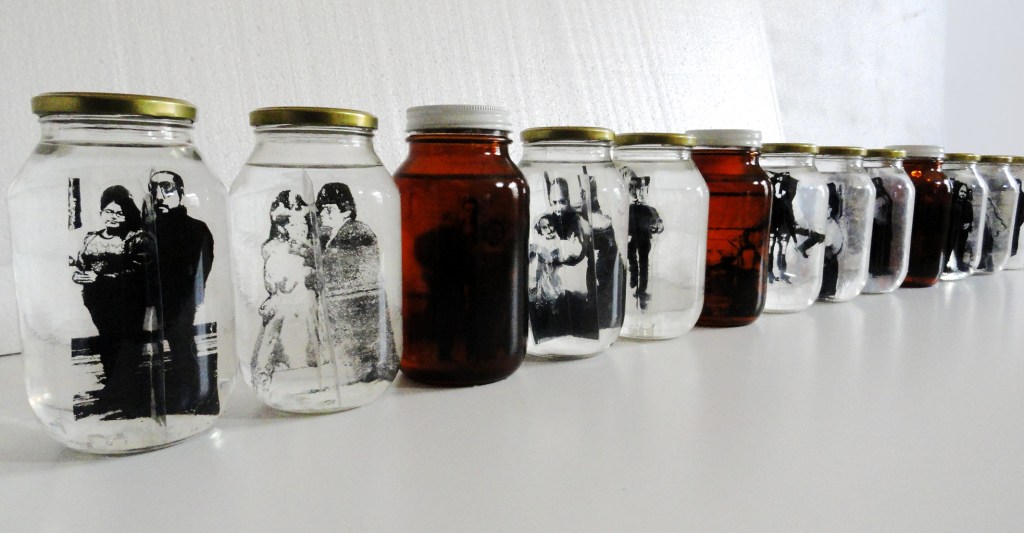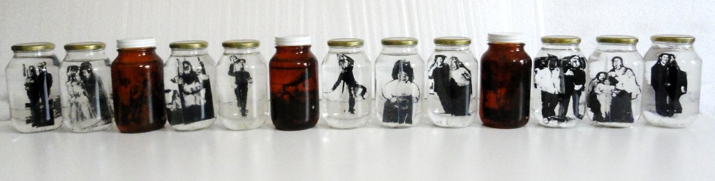 Víctor Mora resignifica esta tradición acercándose al ready-made en la pieza Familia en Conservapresentando a sus personajes en impresiones traslúcidas sumergidas en una especie de almíbar denso dentro de frascos de vidrio que invitan al espectador a un juego visual y reflexivo con los varios sentidos de la idea de la conservación y de la tridimensionalidad.