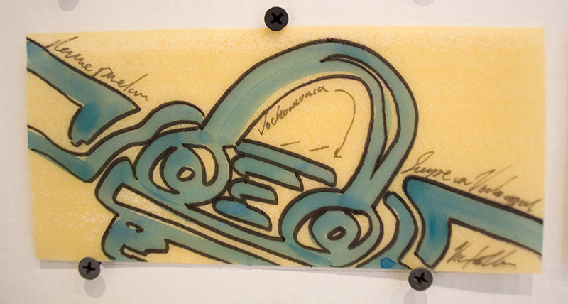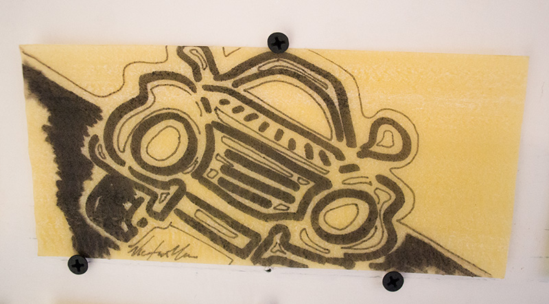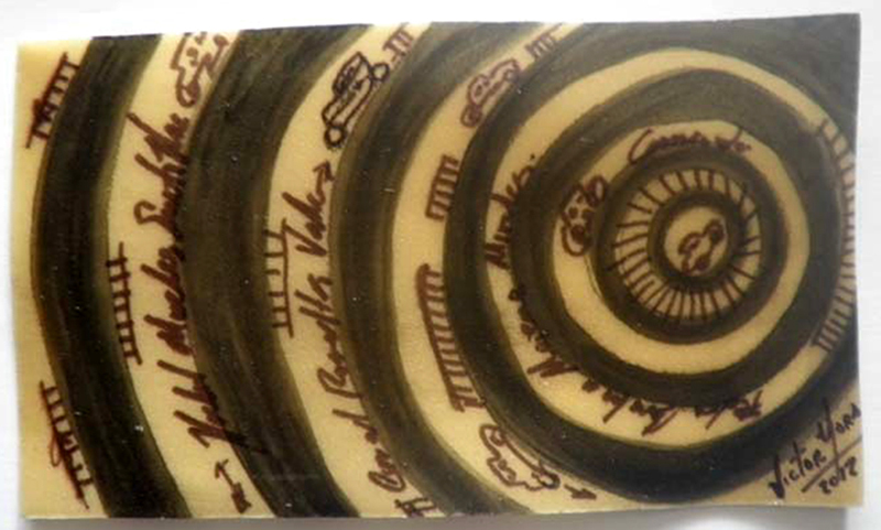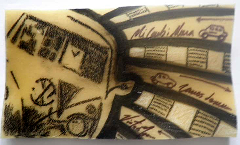 Dibujos sobre pasta de lasaña, 300 pastas 10 x 15 cm c/u. Para el Museo de la Estampa del Estado de México. Producción CDMX.