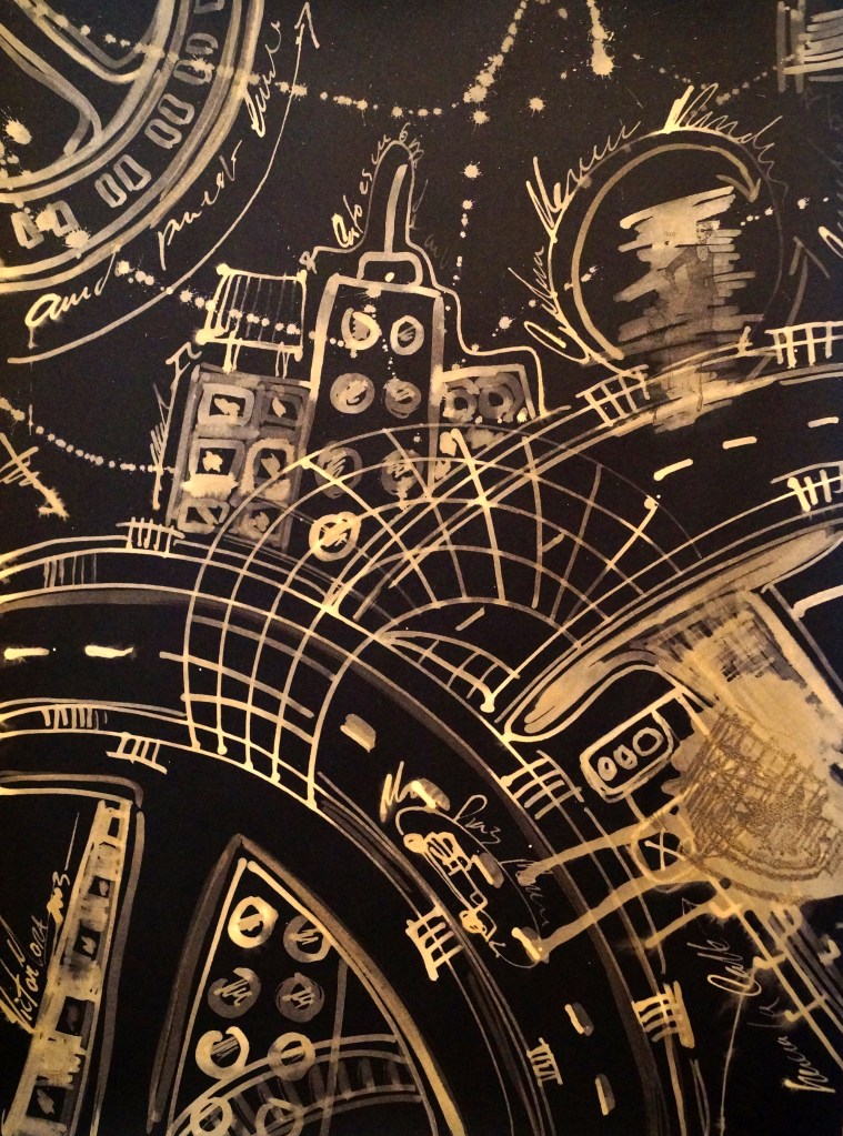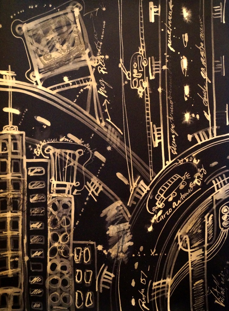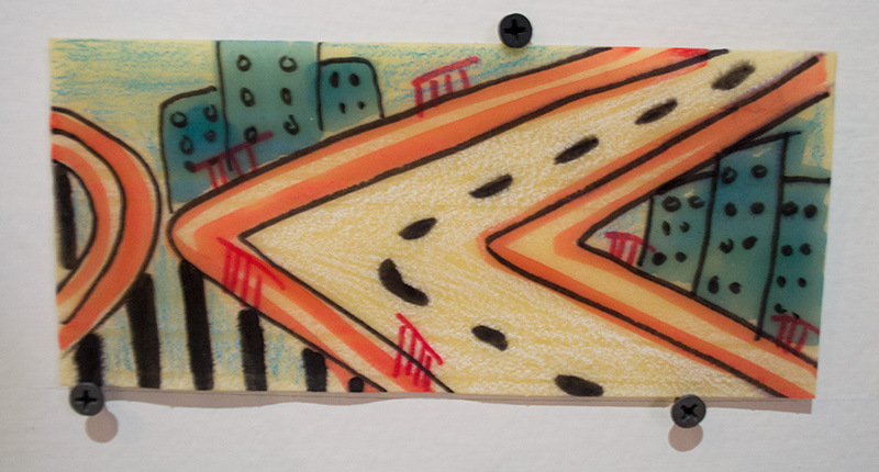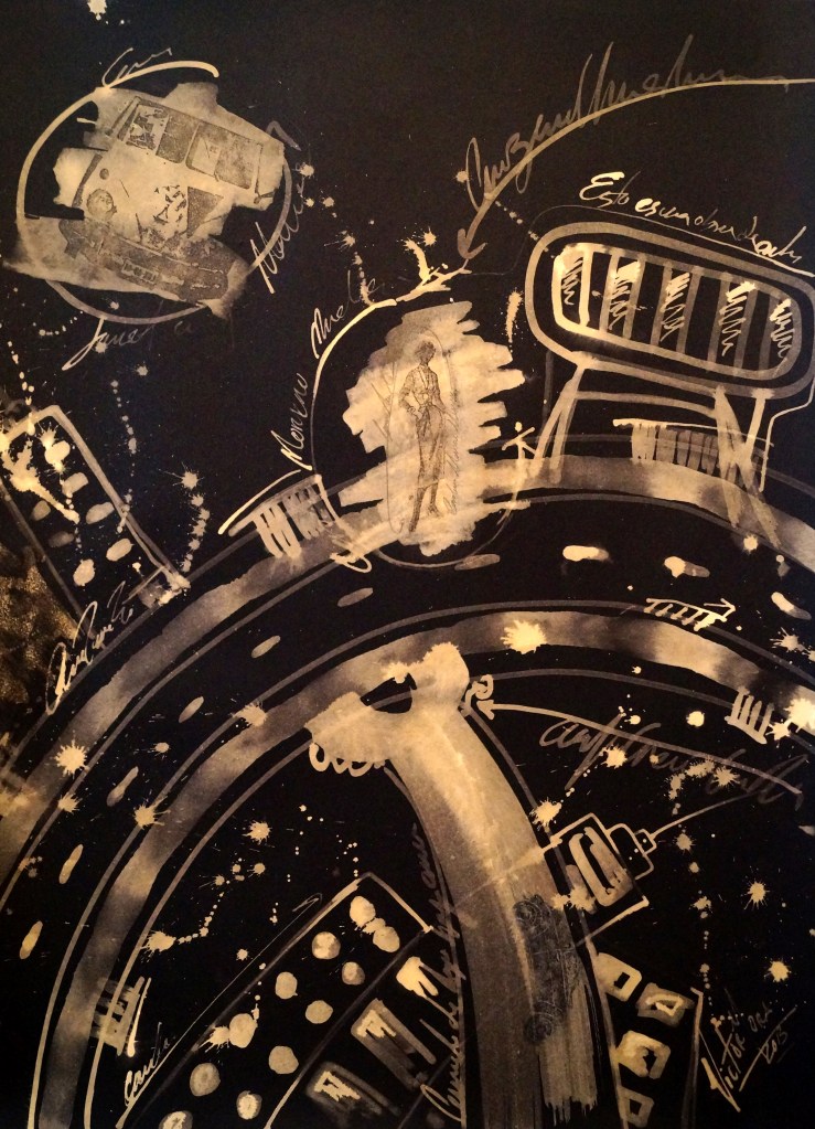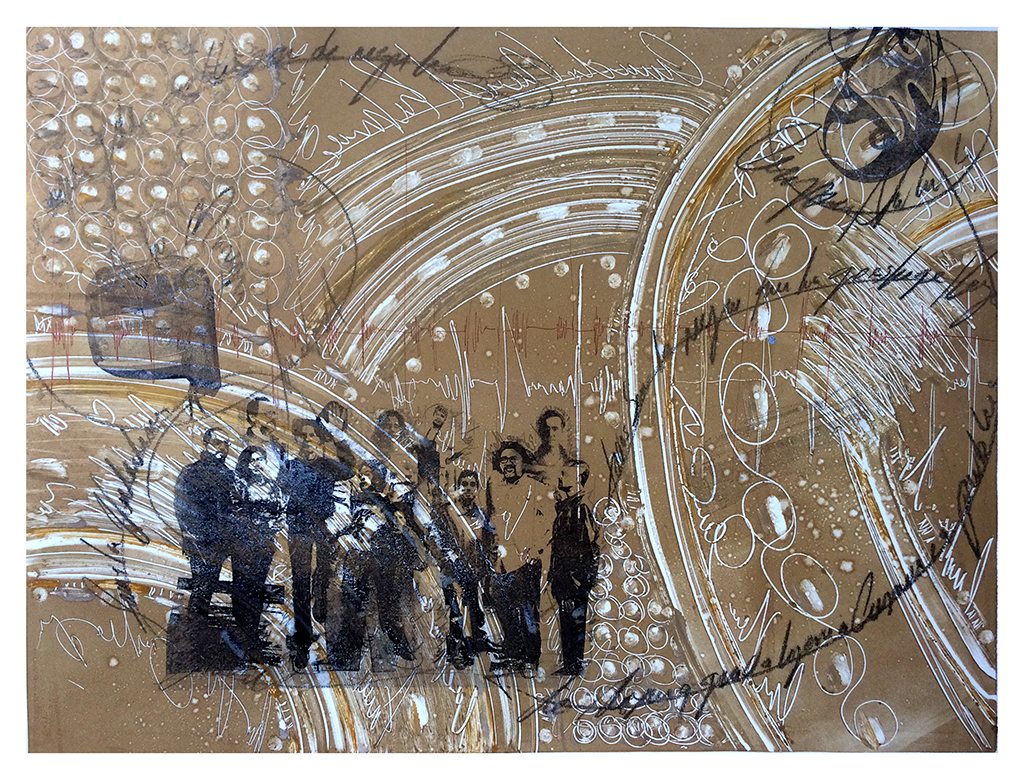 Dibujo, pintura y collage, proyecto puentes y figurines 20 x 20 cm c/u. Producción CDMX.