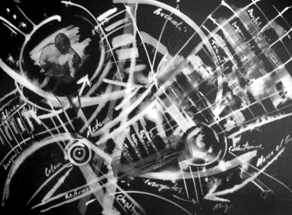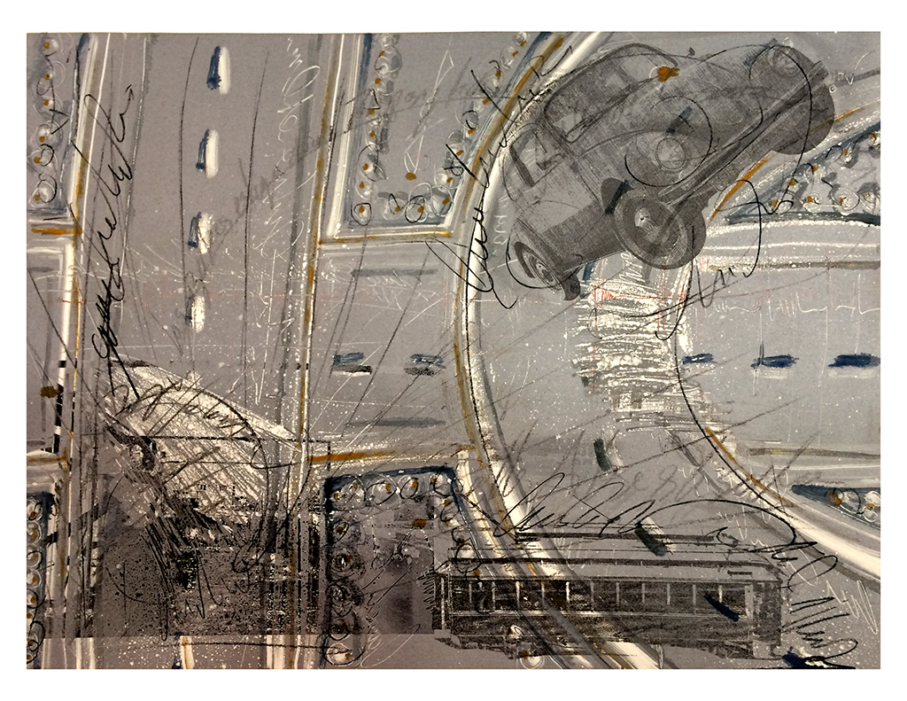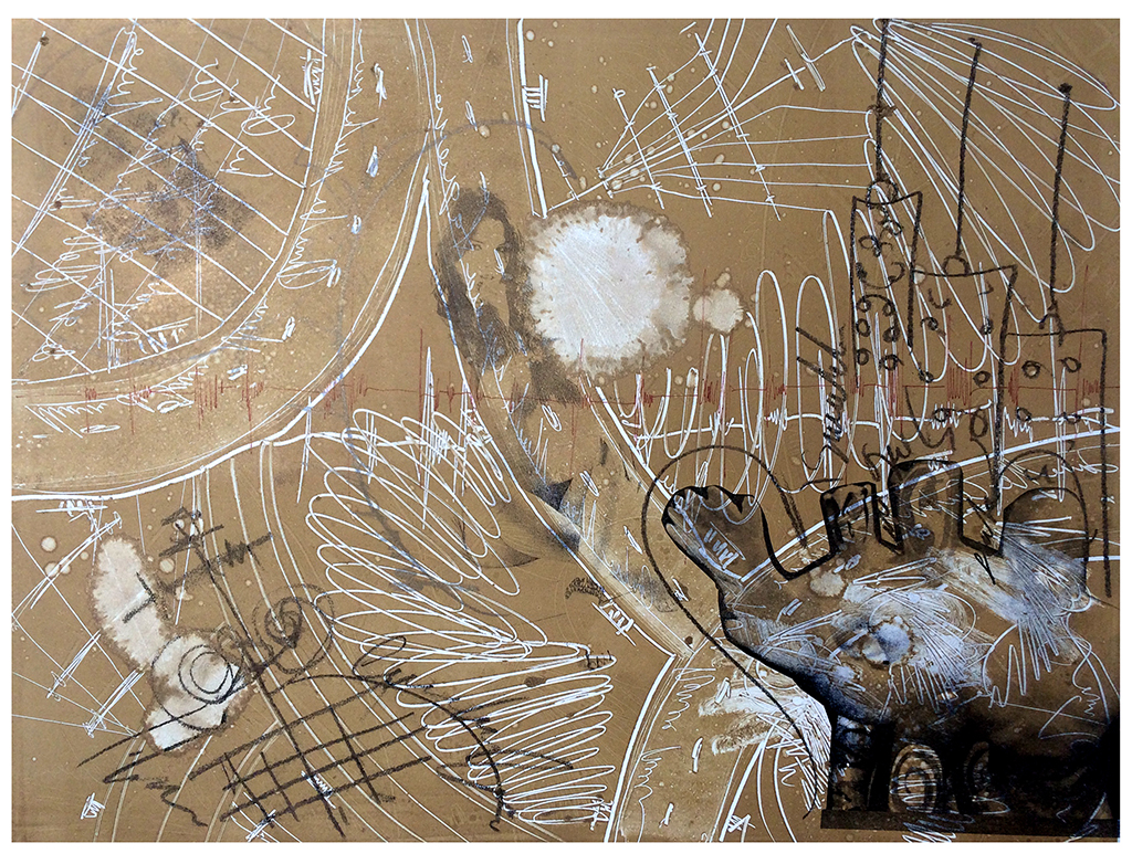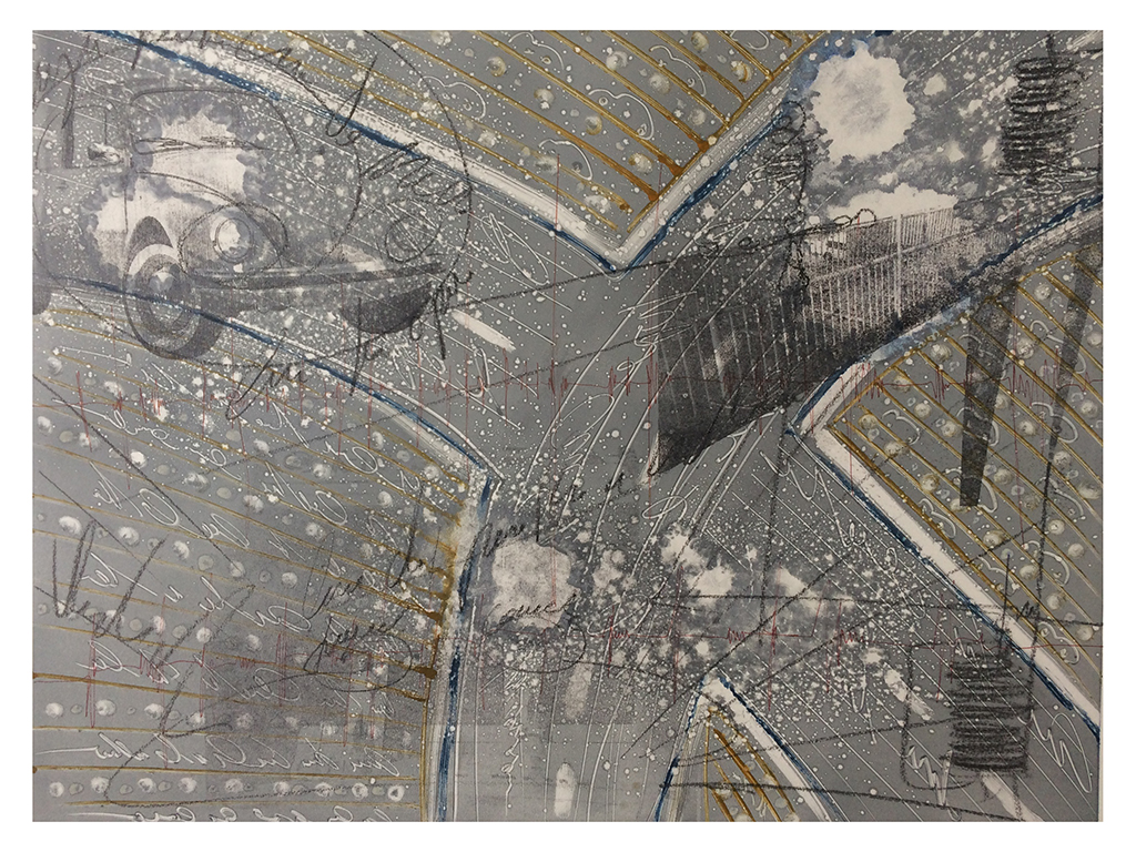 Gráfica sobre papel deslavado, producción para la Galería de Hacienda y Crédito Público. 50 x 70 cm c/u. Realizadas con el apoyo de la beca del Sistema Nacional de Creadores de Arte. CDMX.