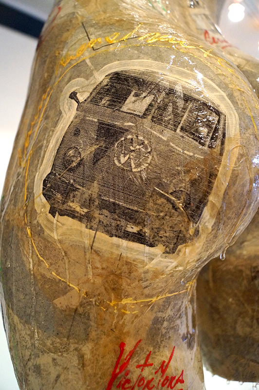 Lo viejo y lo nuevo conviven, esa es nuestra experiencia cotidian de la ciudad. Mora ha transformado esta experiencia en un collage de imágenes sobre la superficie de los maniquies, la ciudad es vista por el como un cuerpo impersonal, objeto de deseo que se nos ofrece pero que al mimo tiempo nos evade en una vista enigmática y sobrecogedora. La experiencia del flanneur puede ser leída en estas piezas. Su muro de caras emulan la acumulación masiva de individuos en ciertas zonas de la ciudad, más que reconocer rostros, vemos muchedumbre, una muchedumbre que se aproxima a nuestro sentidos para sobrepasarlos. Cuando caminamos sobre algunas calles, sentimos a los otros como una inmensa ola qu crece en la ciudad. En las obras de Mora podemos sentir el miedo de aquello que amenaza con hundirnos.